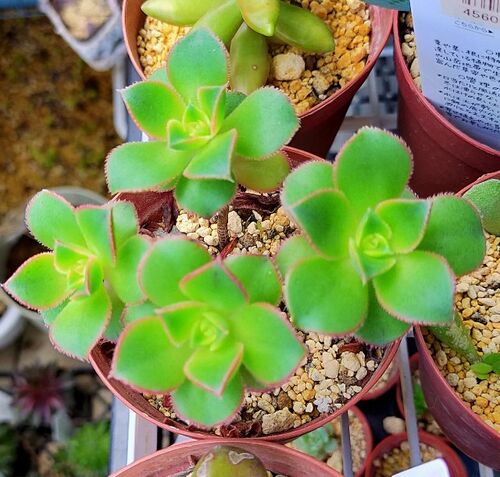 こんばんは。COROです 天気は晴れ時々曇り 涼しくて過ごしやすい1日でした。 【夕映え アエオニウム】 カット挿しの夕映え4兄弟(笑) 綺麗な色です 【名無しさん】 名前が分からない多肉さん アガボイデスかなぁ 濃い緑色と赤い縁がとても綺麗です✨ 【ベンジ…