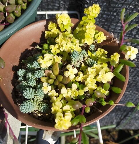 こんばんは。COROです 天気は晴れ時々曇り️ 今日も暑かったです 母にあげた多肉さんたち 【マジョール セダム】 プリプリで可愛いです 元気が良いなぁ 【黄金丸葉万年草 セダム】 CORO家の黄金さんは緑色なのよ 母のは綺麗な黄色ね✨ 【桜吹雪 アナカンプロセ…
